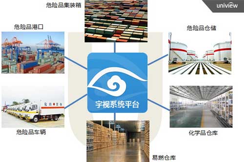 宇視可視化智慧安監方案基于開放的IMOS平臺,通過接入相關的智能環境探測器,報警聯動視頻,并將環境信息、視頻監控融合到企業安全生產應用系統和危險品監管中,可以應用在危化品的生產、運輸、倉儲、銷售等各個環節,包括廠房、港口、倉庫、站點等。