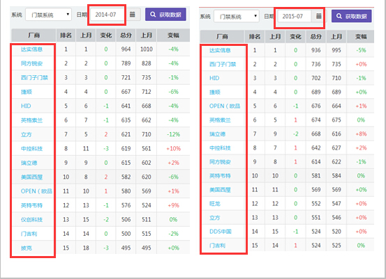 從上圖門禁數(shù)據(jù)對(duì)比顯示中我們不難看出,近一年的門禁系統(tǒng)企業(yè)們排名變化之大,其中表現(xiàn)最為明顯的莫屬“同方銳安”了,從2014年行業(yè)排名第二,下跌至2015年行業(yè)第九;可以看出在感應(yīng)卡技術(shù),生物識(shí)別技術(shù)、物聯(lián)網(wǎng)等新技術(shù)需求給行業(yè)帶來(lái)的激烈競(jìng)爭(zhēng)。