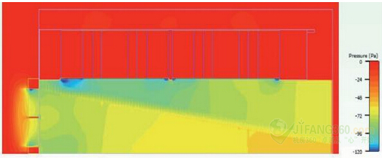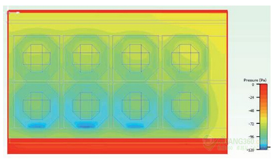圖4:風扇進氣口的靜態(tài)壓力(0.2立方米/秒)。