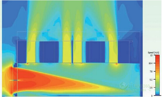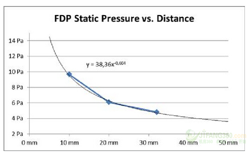 圖11:EMI屏蔽進氣口的距離與風扇的進氣氣流分布:30毫米(0.2立方米/秒)。