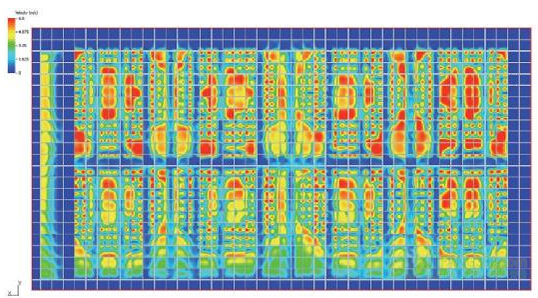 在創(chuàng)建一個組件,使每個插槽的氣流均勻統(tǒng)一之前,我們決定看看仿真模擬空氣流量,而不考慮漩渦。我們觀察到在遠離風扇75毫米的一定距離,速度變化仍然非常重要(圖8)。